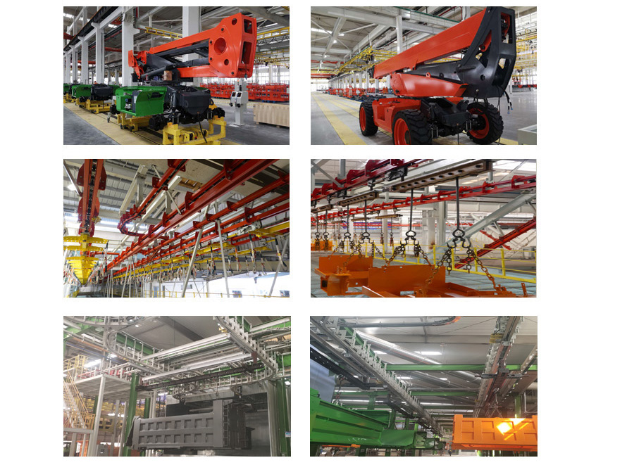 In 2019, Jinlong provided service for Zhejing DINGLI. Finished the powder spray production line for structural parts and sheet parts, large arm and curved arm parts powder spraying line, shear fork lift truck GA line, large arm and curved arm GA line, and painting line for balance weight. The production rate of the production line is 1.5 min/piece at the fastest and 10 min/piece at the slowest. The weight of the work-piece is 300~7500 kg.