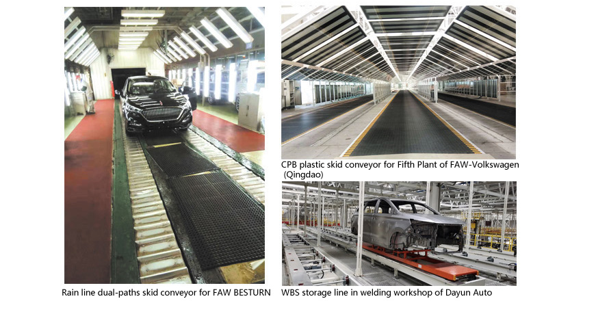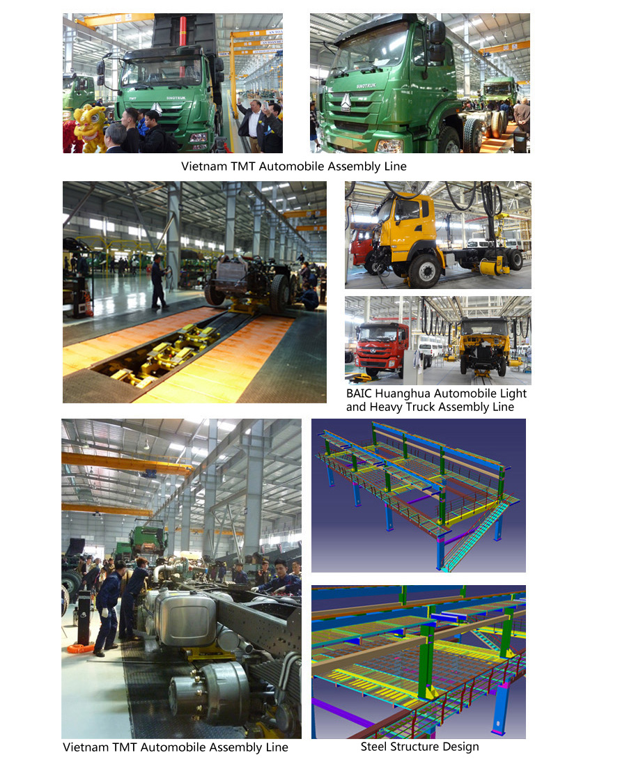 1.  General assembly line: body PBS, interior trim line system, cab EMS system, chassis A/B line system, instrument panel sub-assembly system, front and rear axle sub-assembly system, power train sub-assembly system, tire conveyor line, seat conveyor line, rain line, waste recycling system, etc.