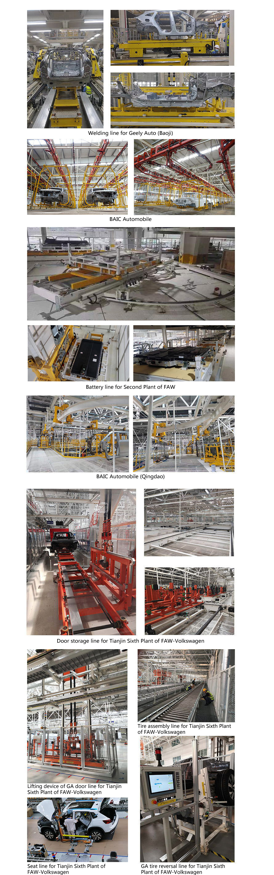 Automotive industry is one of the main fields that Jinlong engages in. With the development of Chinese auto industry, Jinlong has introduced the advanced conveyor technology, continue strengthening R&D in product intelligence and system integration, as a result, value of our product keep advancing. We have won projects such as welding, painting, GA lines design, supply, installation and commissioning for auto companies including China FAW Group Corporation, FAW Car Co.,Ltd, BAIC Group, Chery Automobile Co.,Ltd, Tianjin FAW XIALI Automobile Co.,Ltd and Jiangling Motors Co,Ltd. We also won order of the assembly line conveyor system for BAIC Motor Co.,Ltd in South Africa.